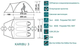 Серия Canadian Camper KARIBU — это классические туристические палатки с тамбуром, рассчитанные на 2, 3 и 4 человека. Модели отличаются продуманной конструкцией и комфортом, подходя как для кемпинга, так и для походов благодаря компактным размерам в сложенном виде и небольшому весу.
