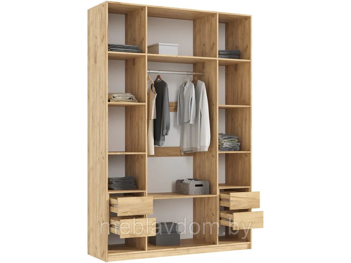 Шкаф «Марвэл» — стильное и практичное решение для вашего интерьера. Этот минималистичный предмет мебели гармонично впишется в гостиную, прихожую или спальню, не перегружая пространство лишними деталями. Внутри шкафа предусмотрены полки, штанга для одежды и выдвижные ящики, что позволяет удобно организовать хранение вещей и легко к ним получить доступ. Цветовая гамма шкафа создаст атмосферу уюта и тепла, добавляя нотку комфорта в ваш дом.