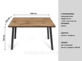 Опоры: изготовлены из прочного металла и окрашены в глубокий чёрный цвет. Оригинальная конструкция с перекрёстными опорами придаёт столу современный вид и обеспечивает высокую устойчивость.