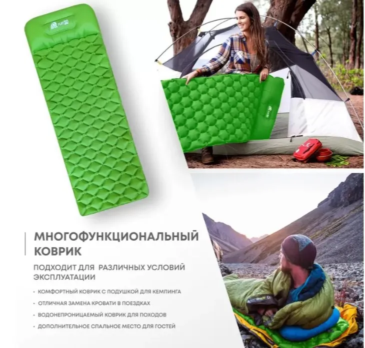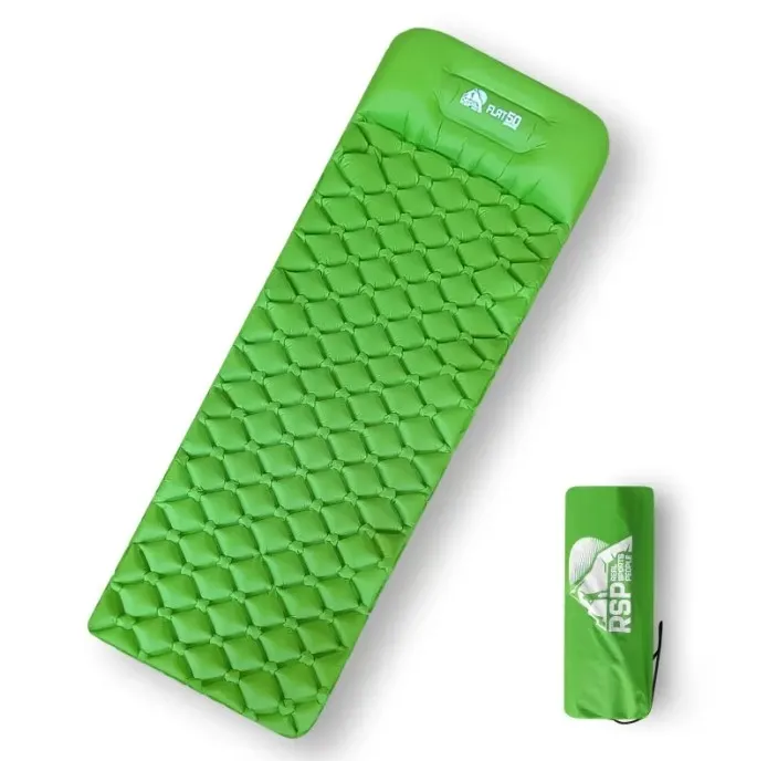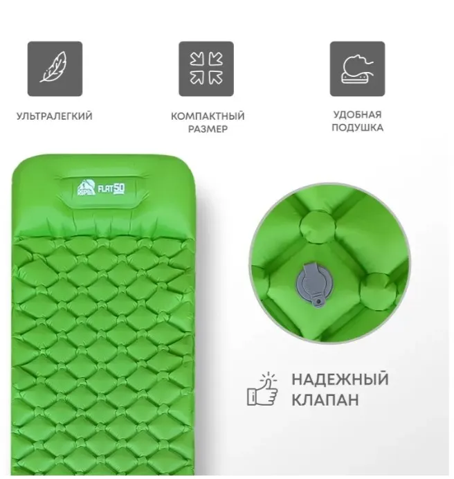 В комплекте чехол с утяжкой и ремонтный набор (заплатка и клей). Для надувания достаточно открыть клапан и надуть коврик ртом до слегка мягкого состояния — при нагрузке воздух распределится равномерно. Для сдувания скрутить с противоположной стороны, выдавливая воздух.Бренд: RSP