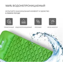 Коврик изготовлен из прочного материала 40D nylon ripstop TPU: износостойкий, выдерживает высокое давление, непромокаемый. Клапан из мягкого морозостойкого пластика не дубеет на холоде. Специальная система воздуховодных каналов равномерно распределяет нагрузку и повышает теплоизоляцию за счет замедления циркуляции воздуха.