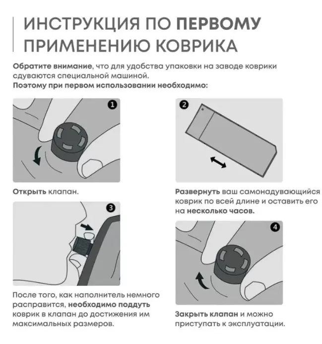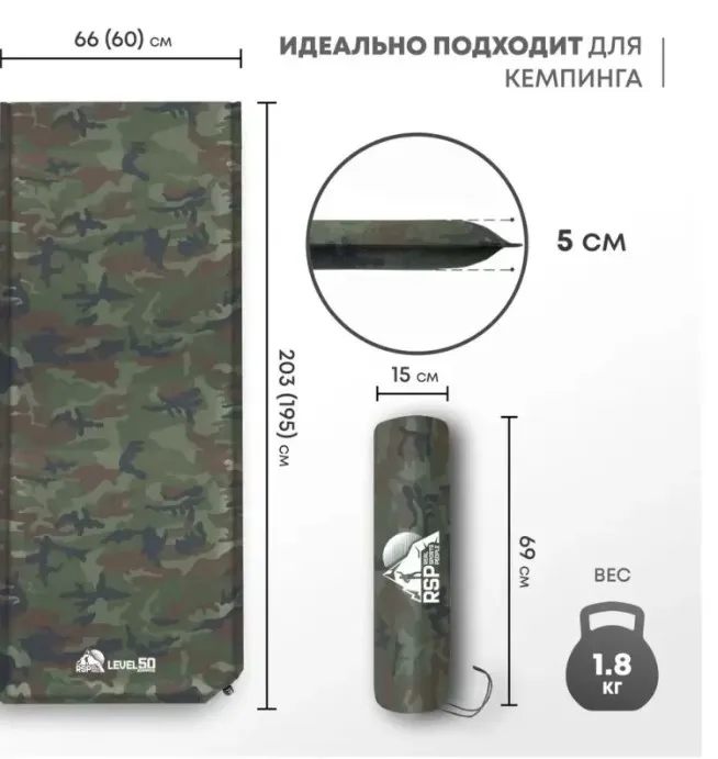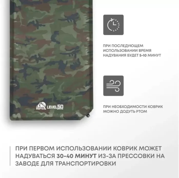 В комплекте чехол с утяжкой и ремонтный набор (заплатка и клей). Для надувания достаточно открыть клапан и надуть коврик ртом до слегка мягкого состояния — при нагрузке воздух распределится равномерно. Для сдувания скрутить с противоположной стороны, выдавливая воздух.Бренд: RSP